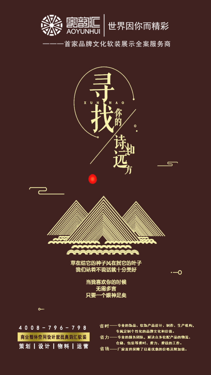 logo的字體部分,“奧韻匯”字體采用了中國式風格結構的變體字,意在符合奧韻匯的中國式設計文化理念;而奧韻匯諧音于“奧運會”,旨在奧韻匯在發揚中國式文化設計的同時企業愿景:打造全球最大的家居運營和服務商。