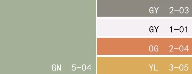 —色卡:灰綠色、大象灰、亮白色、珊瑚金色、赭黃色—