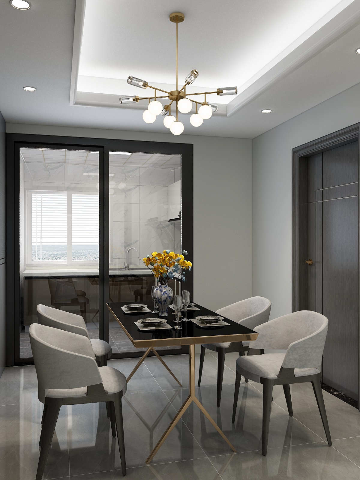 ——餐廳既簡單,又十分現代化,金屬材質的應用,輕奢感游走在空間里。