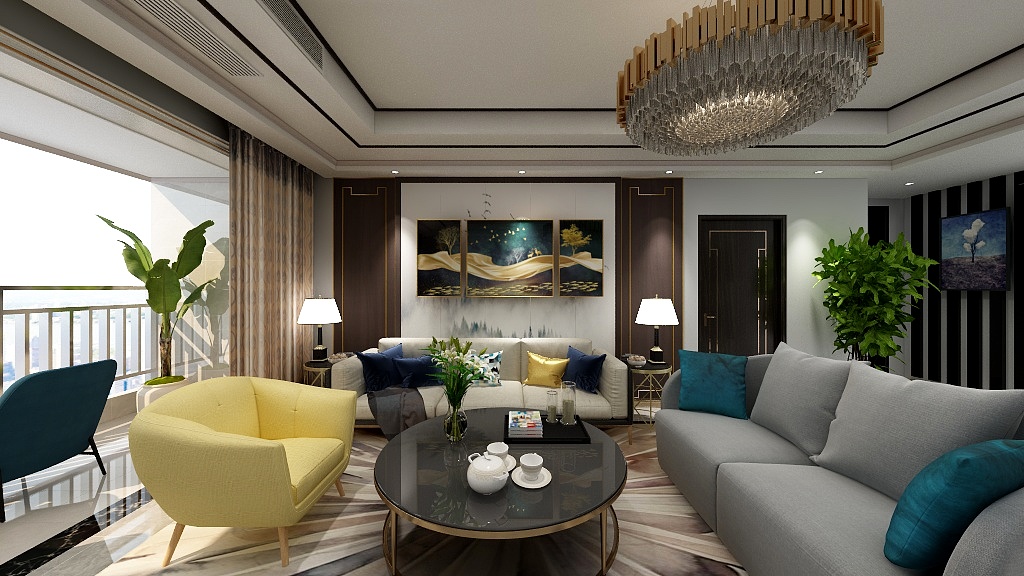 以金屬線條勾勒,軟裝飾品搭配,